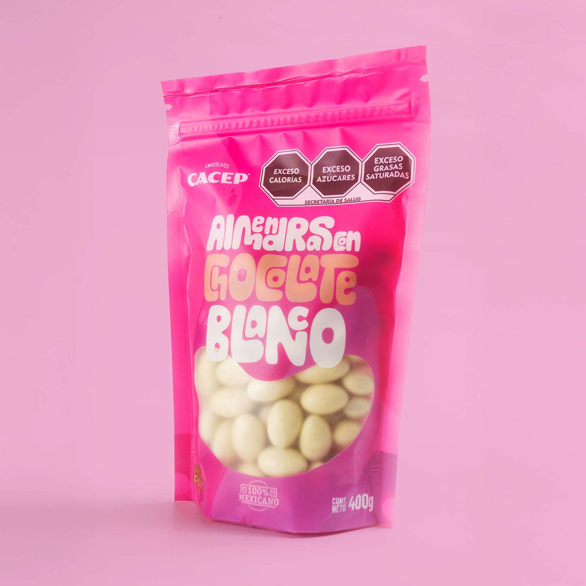 Exquisitas almendras tostadas cubiertas con un cremoso chocolate blanco. Una combinación para saciar tu antojo.