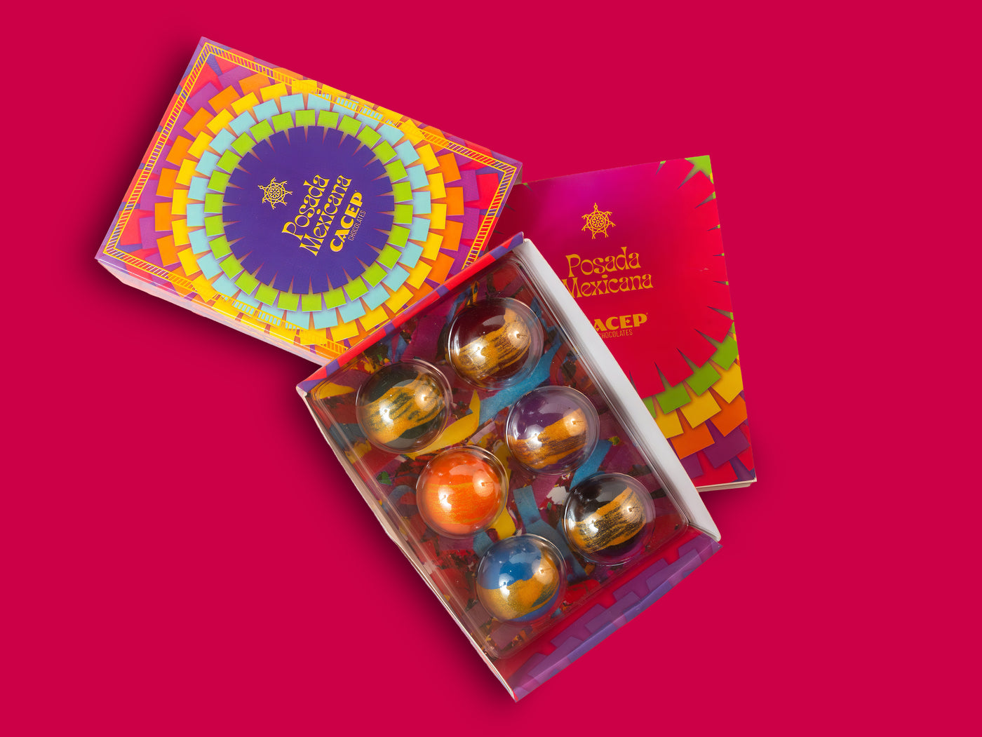 Caja de bombones gourmet inspirada en las posadas mexicanas.